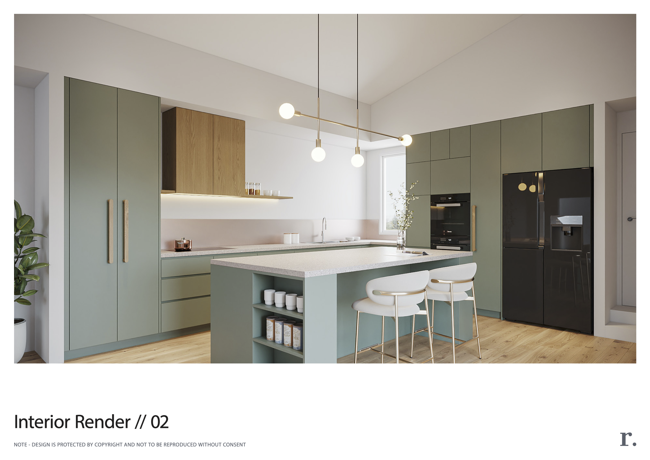 The kitchen featured Laminex ‘Green Slate’ in Flint finish, anchoring the kitchens colour palette and delivering a rich, contemporary tone that complemented the warm timber accents and natural textures. Overhead, open shelving above both the cook top and sink creates space for a rotating display of art and collected objects - a feature that brings an ever-changing, personal touch to the home.